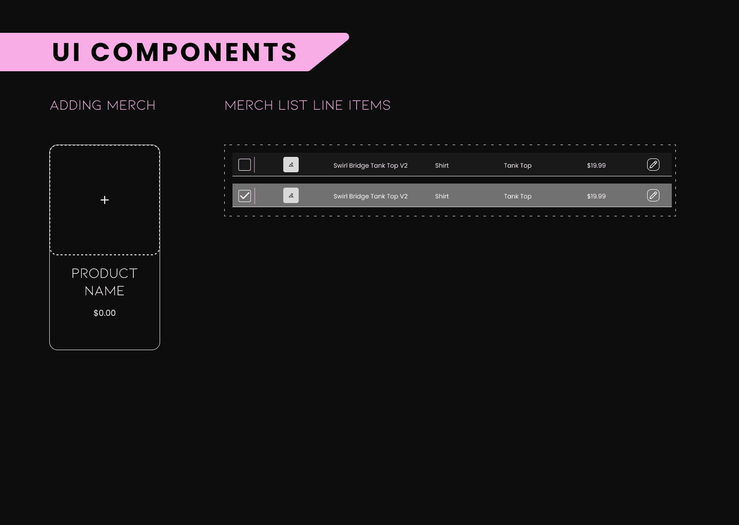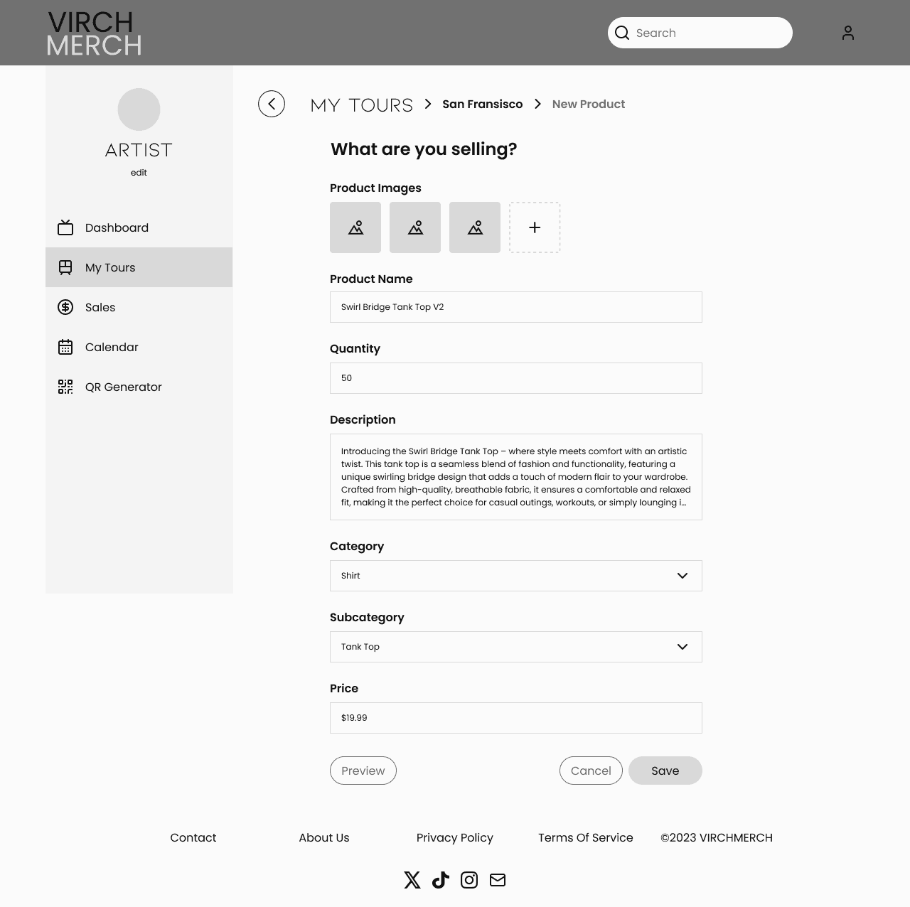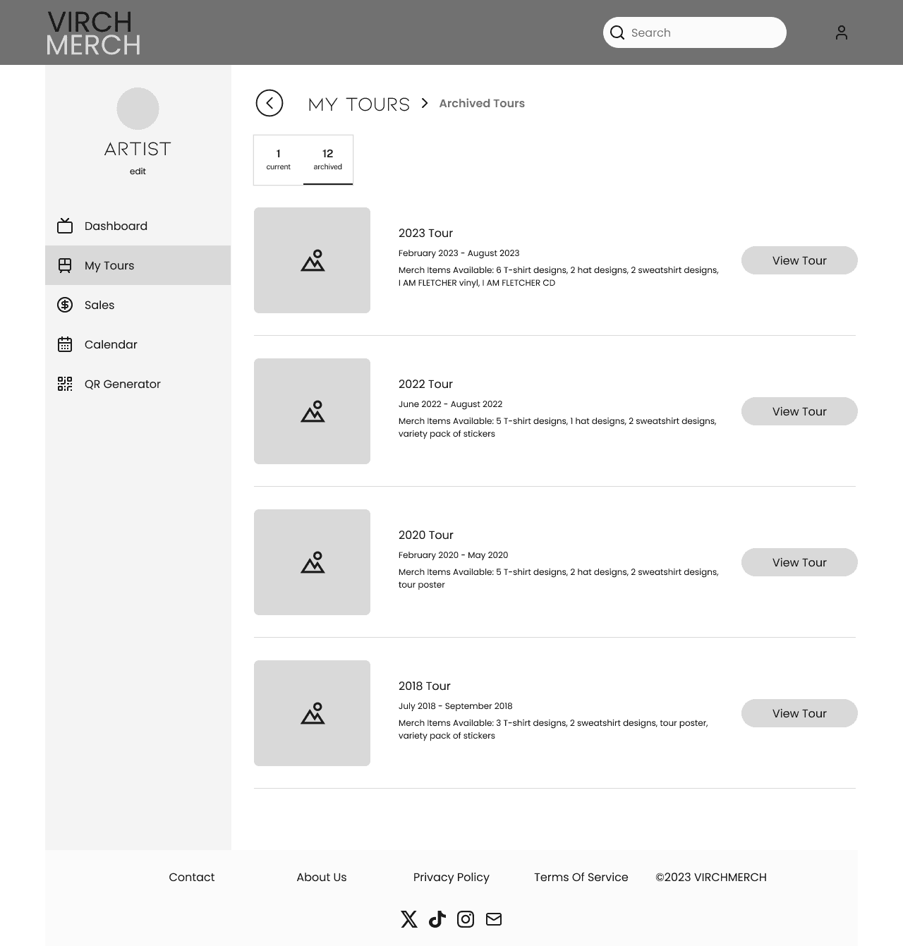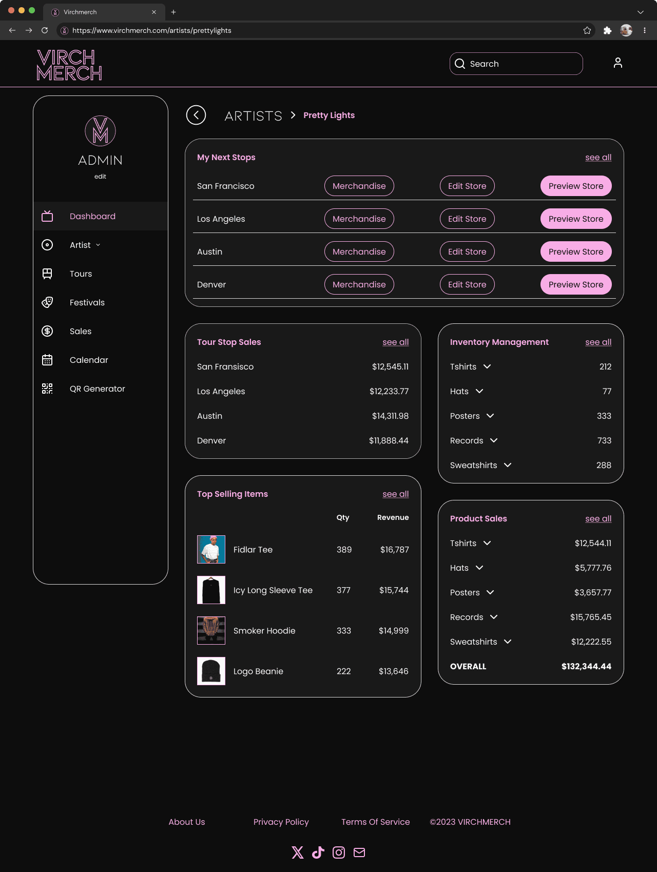 Store items typically were presented in a digestible grid format, usually about 4 in a row with no fluff or clutter. Virch Merch needed to emulate this simplicity to increase artist merchandise sales