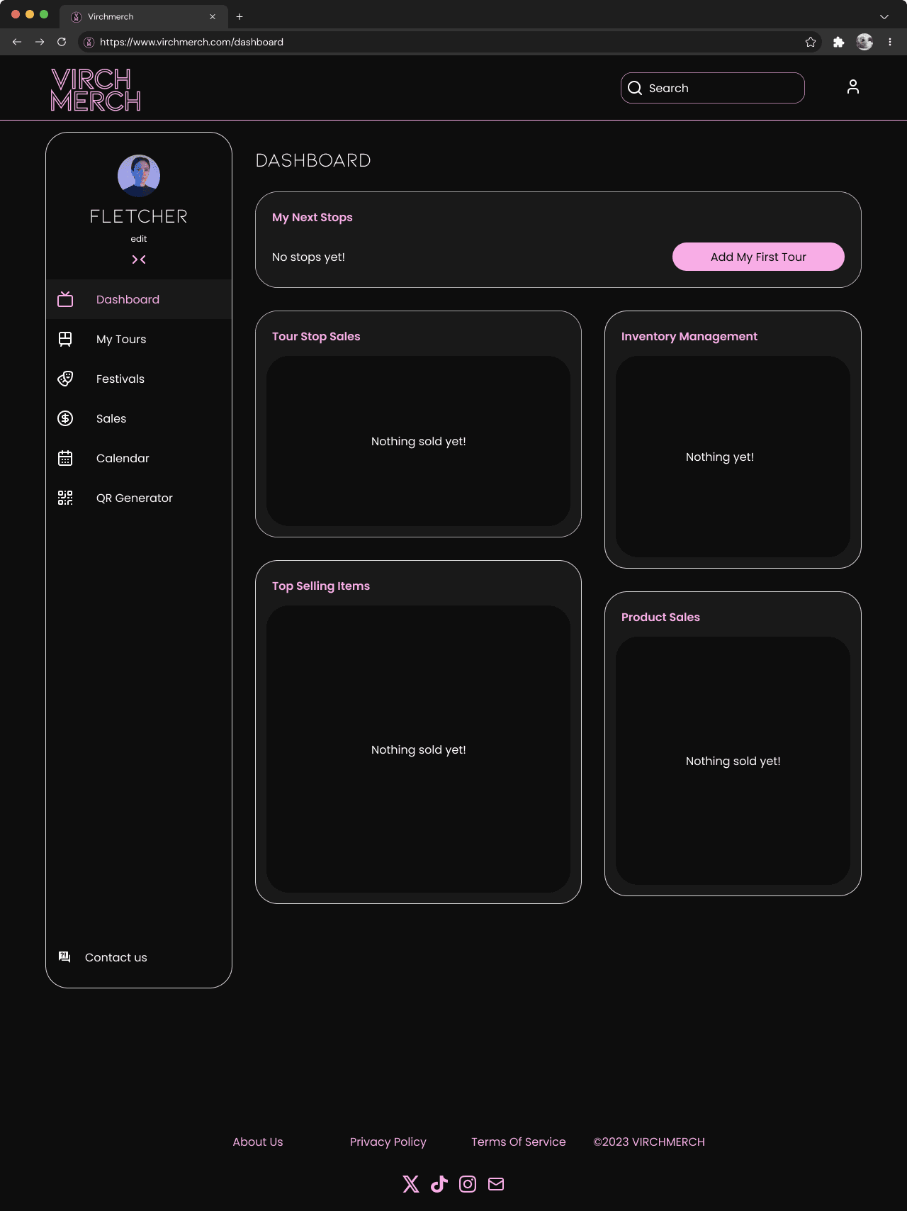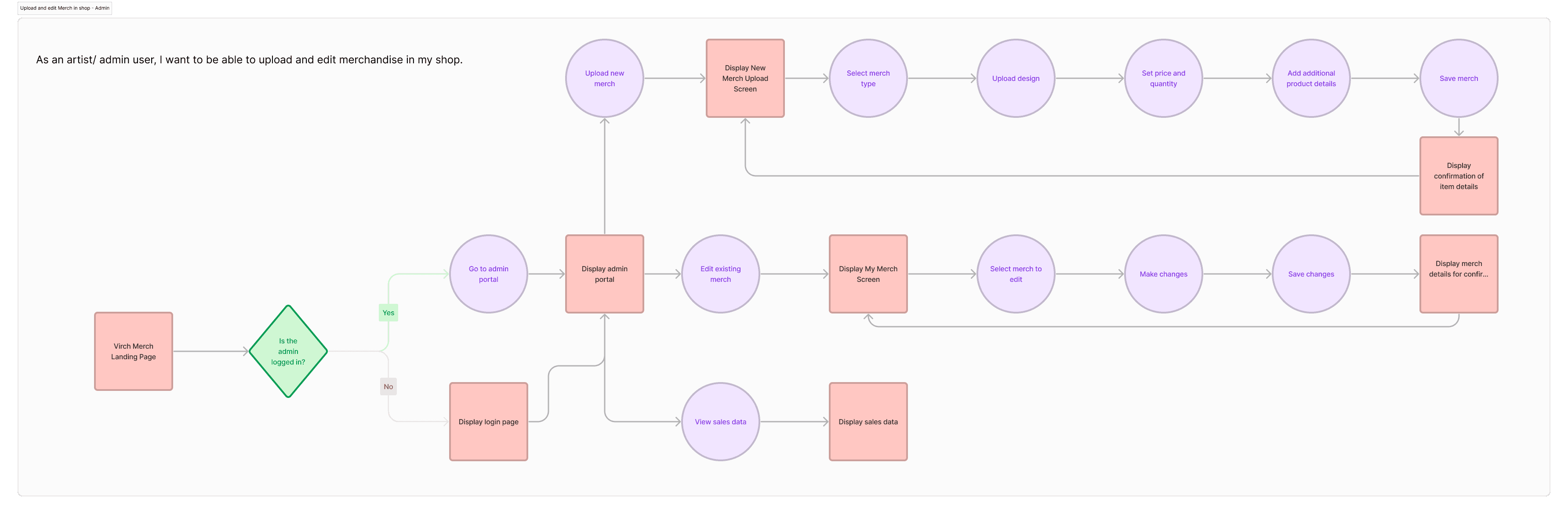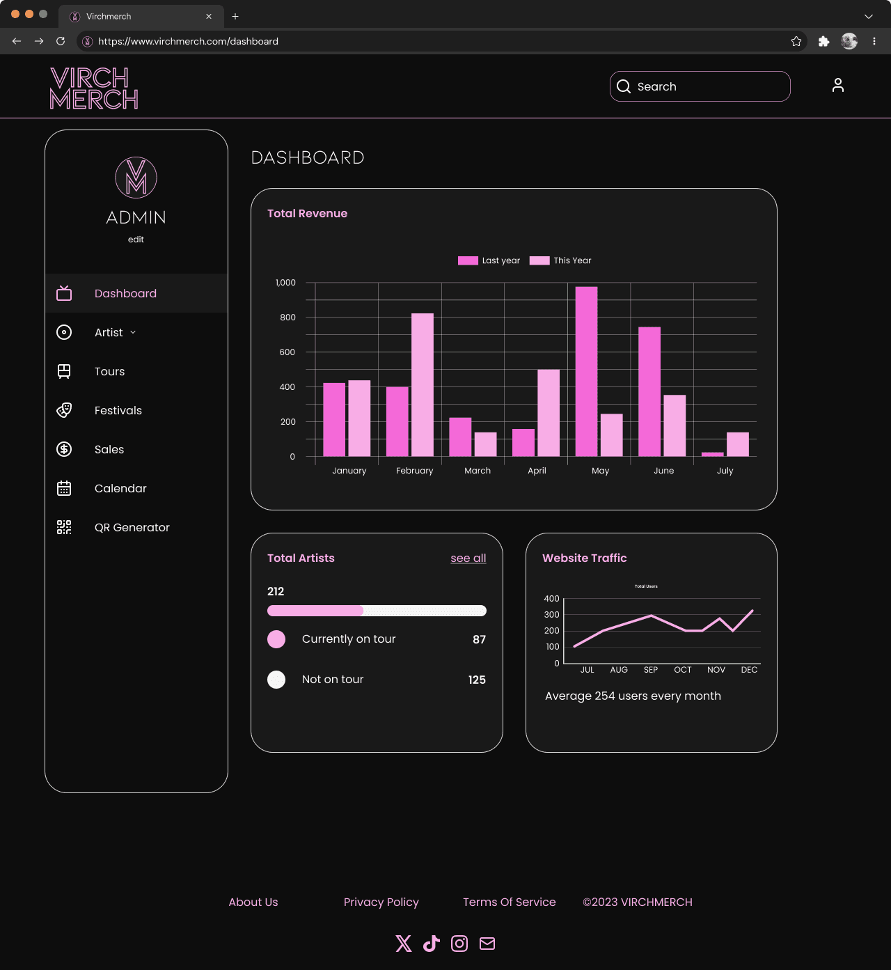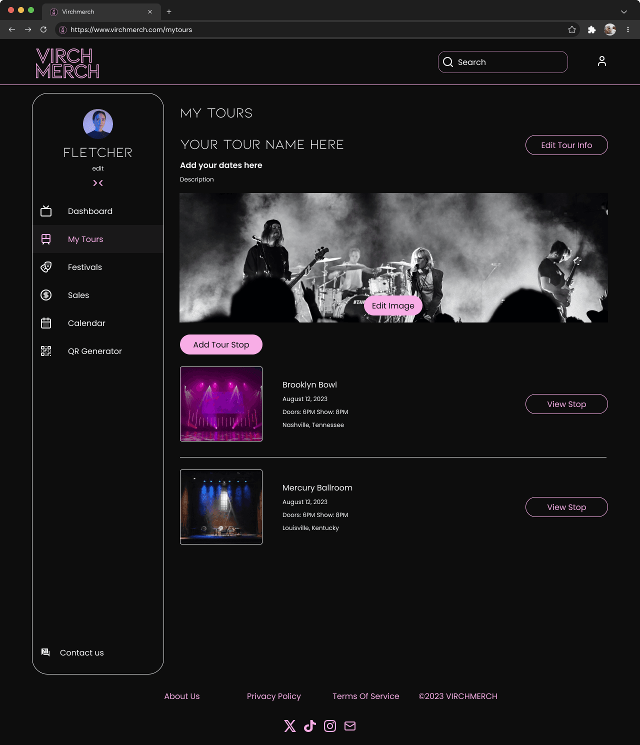 When it comes to live concerts, selling merchandise can pose a challenge to musicians who find themselves over or underspending on items that don't sell to their expectations, leading to lost revenue. Virch Merch aims to mitigate artist losses and give customers a more streamlined experience, but the current website didn’t have the full functionality they were promising: allowing fans to buy merchandise during shows, and artists to set up their shops. They also needed to cater to the concert scene as a whole, by presenting themselves with a more exciting and groundbreaking brand identity.