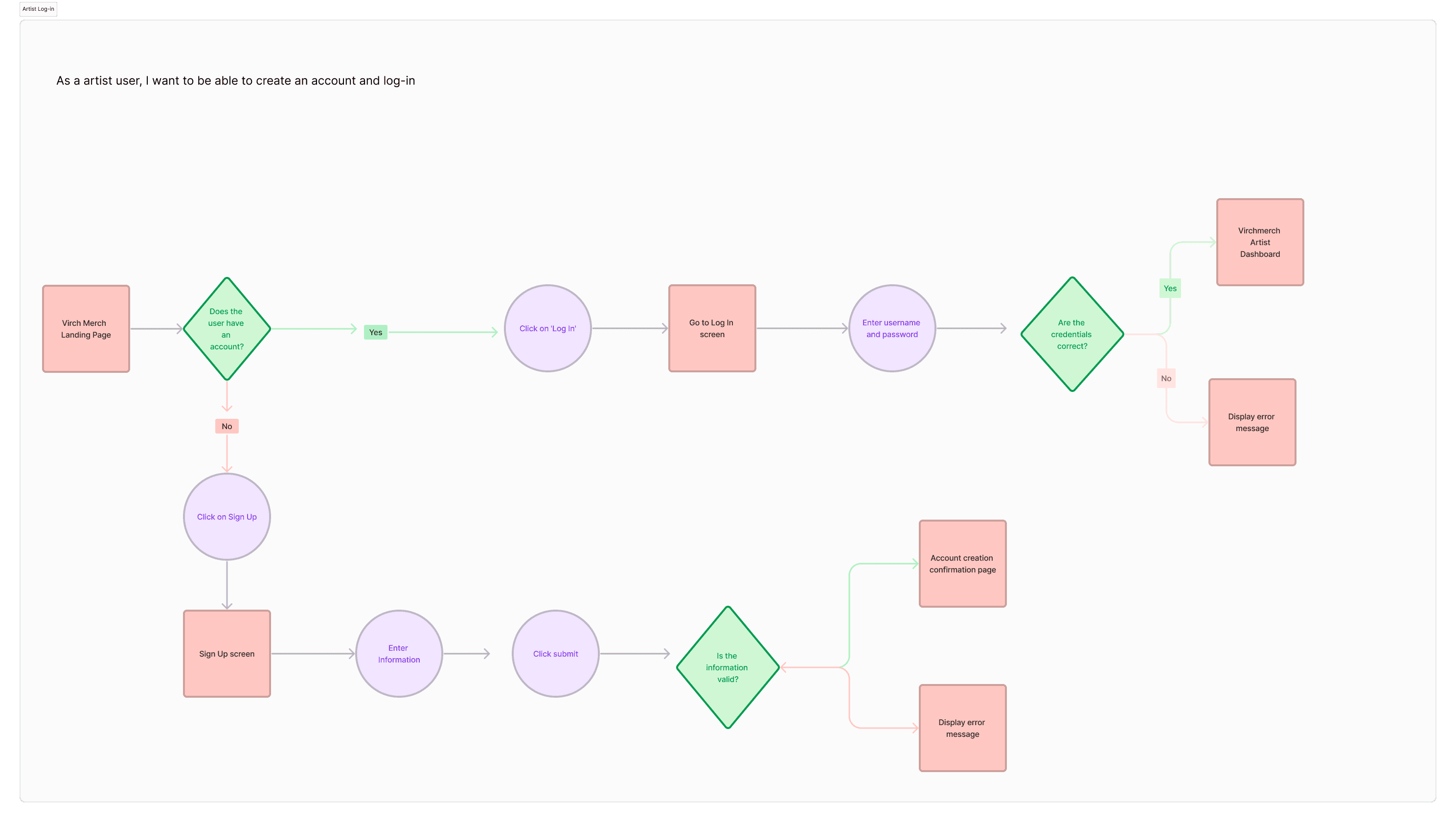 Virch Merch sent our team an MVP consisting of two developing style guides to get a sense of the vibe their product would have: modern and hip, without sacrificing accessibility. They also provided us with more insight into the vision they wanted for their platform and answered a questionnaire we had compiled for them. Here are the key points of their responses: