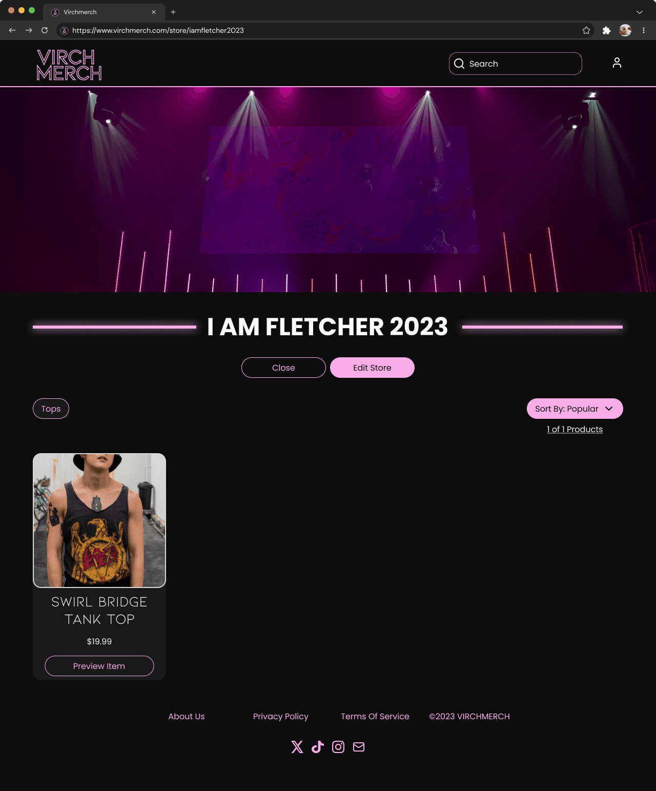 Virch Merch is an online merchandise purchasing platform, that allows fans to buy their favorite artist's gear without ever waiting in line, instead purchasing from the artist's Virch Merch page and allowing talent to tailor their merchandise orders to the number of preorders.