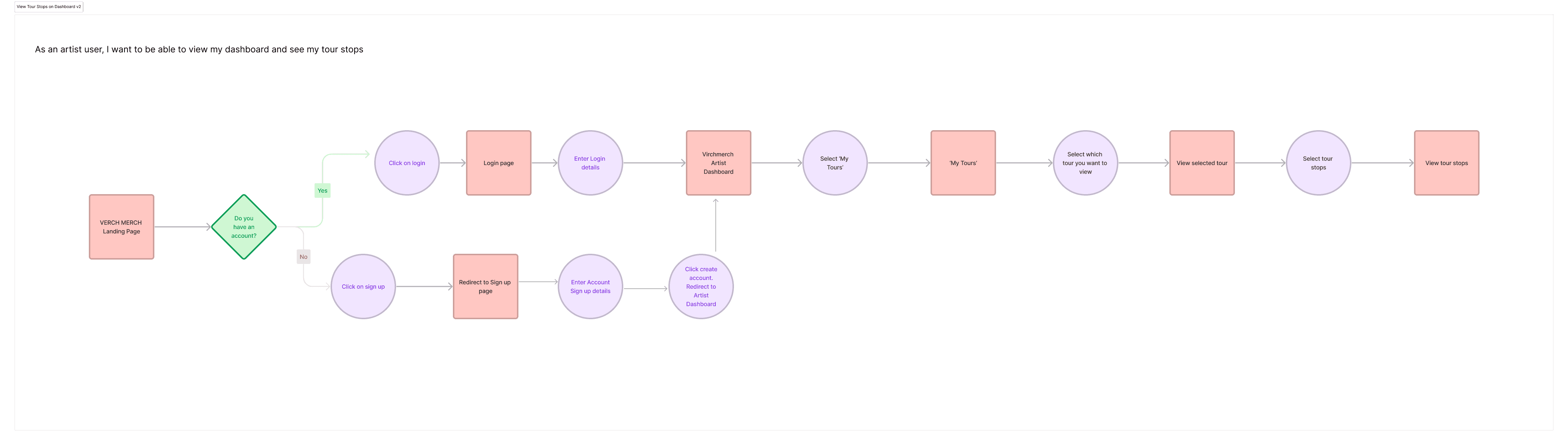 As an artist user, I want to be able to view my dashboard and see my tour stops